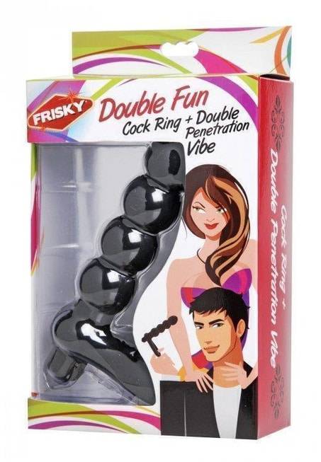 Насадка с вибрацией Double Fun Cock Ring with Double Penetration Vibe XR Brands черный