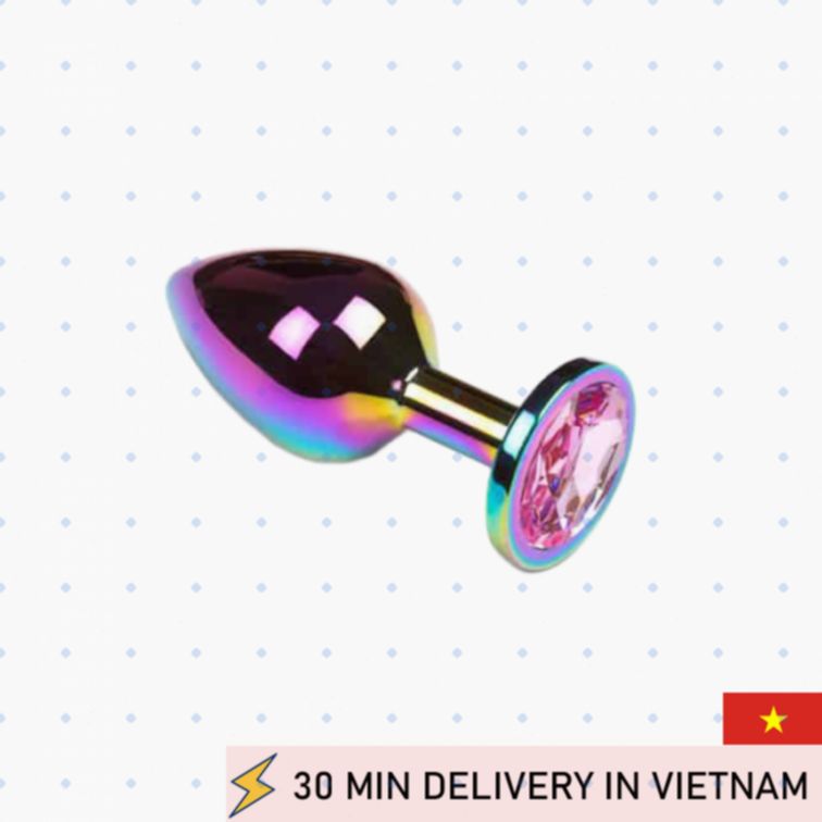 Анальная пробка Пикантные Штучки разноцветная с розовым кристаллом đấu giá , средняя