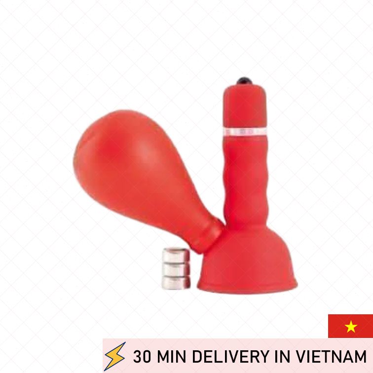 Вибратор на сосок с грушей красный