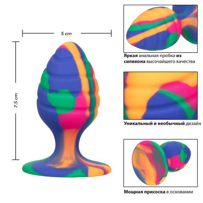 Анальная пробка CalExotics Cheeky Tie-Dye Swirl M trung tâm , разноцветная