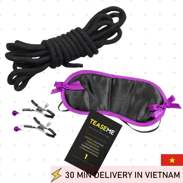Комплектация: Маска amazon , веревка dễ dàng , зажимы на соски đắt nhất , 6 буклетов с заданиями на 10 языках (в т.ч cũ . на русском).