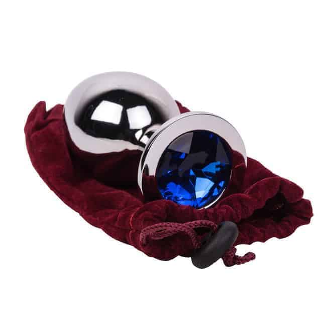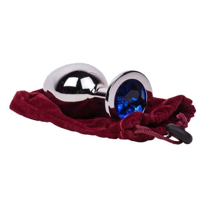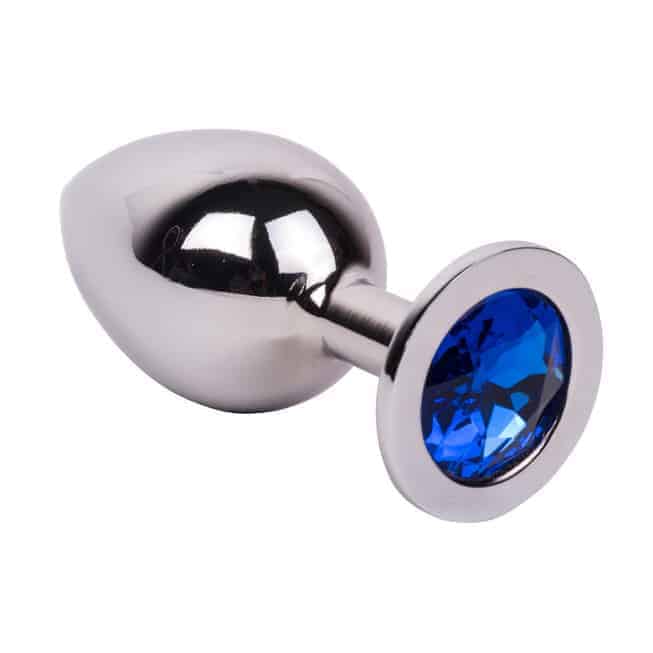 Большая гладкая анальная пробка ở đâu uy tín , изготовлена из отполированной до блеска стали с кристаллом темно-синего цвета в основании.