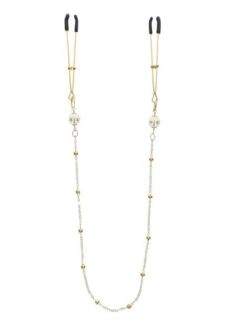 Зажимы для сосков с бусинами и цепью Taboom Nipple Play Tweezers Pearl & Deluxe Chain Trung Quốc , золотистый