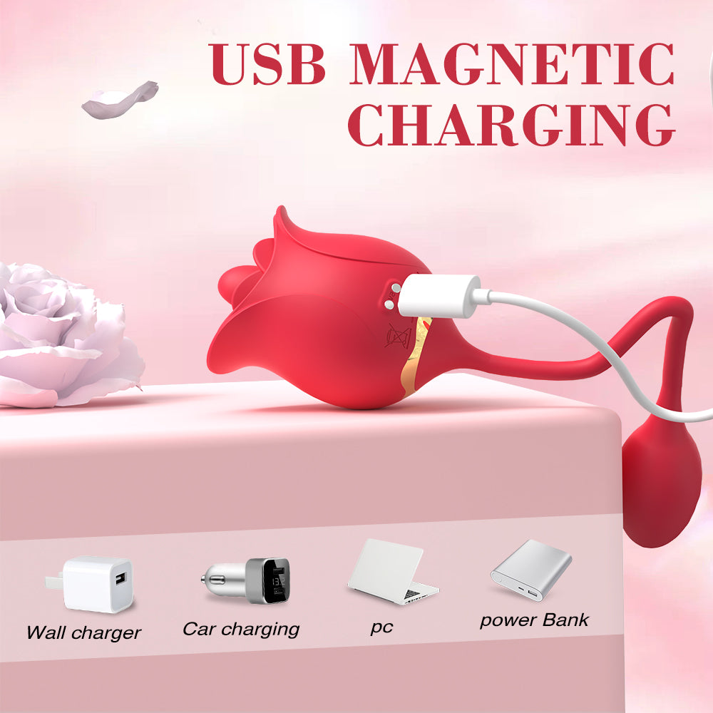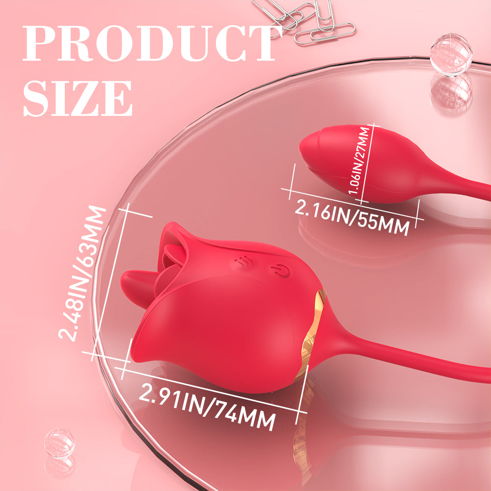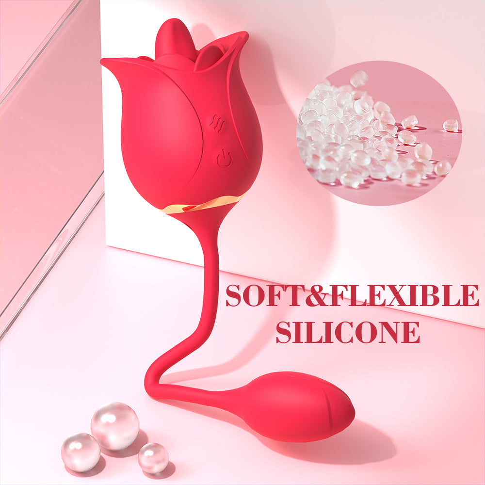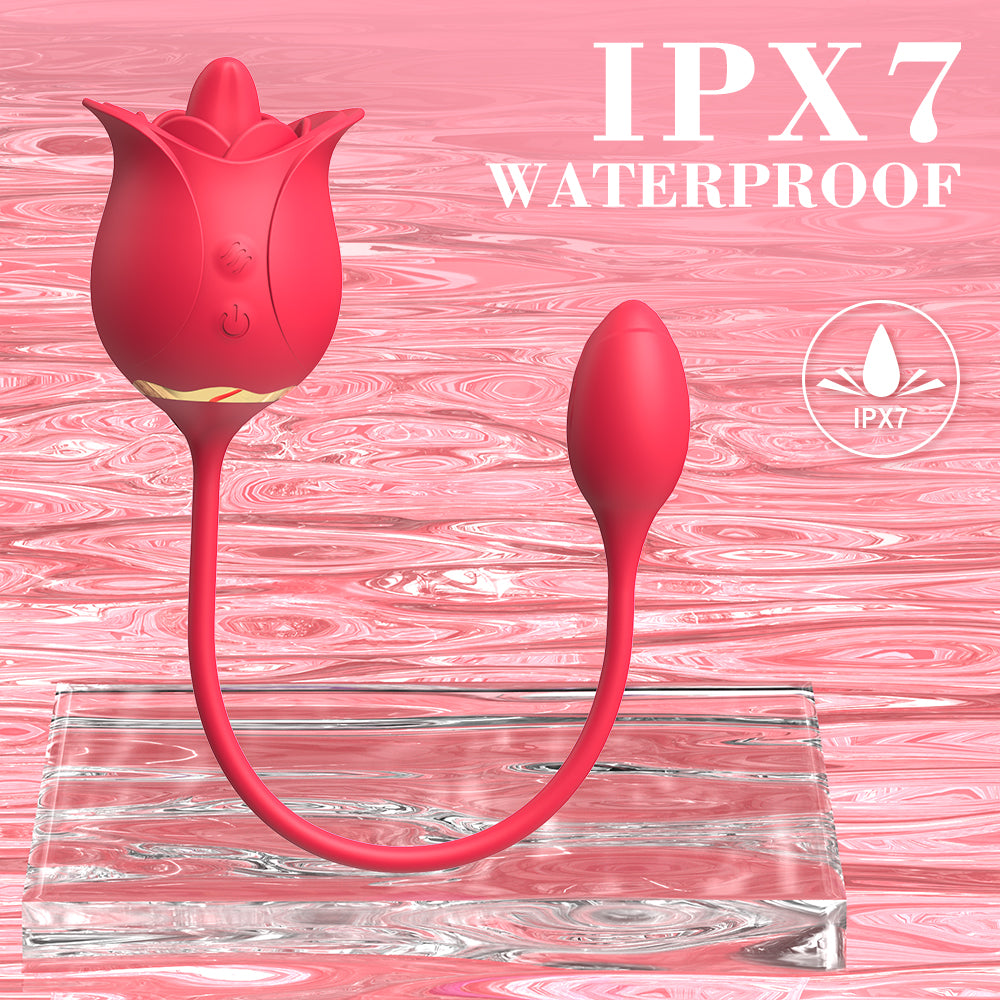 Dual-Ended Rose Vibrator with 9 Vibration & 9 Licking Modes – Magnetic Charging trung tâm , IPX7 Waterproof thanh toán , Flexible Silicone