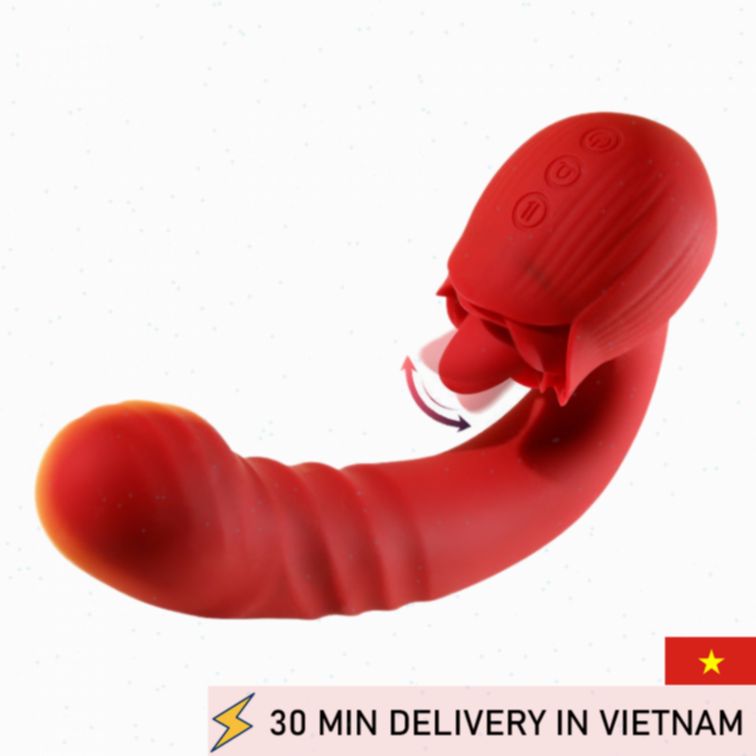 Rose Telescopic Vibrating Tongue licking Thrusting Dildo female Vibrator