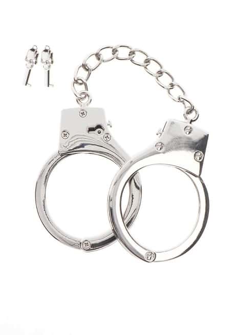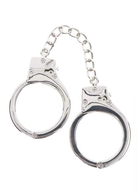 - Классические металлические наручники надежно фиксируют руки партнера.